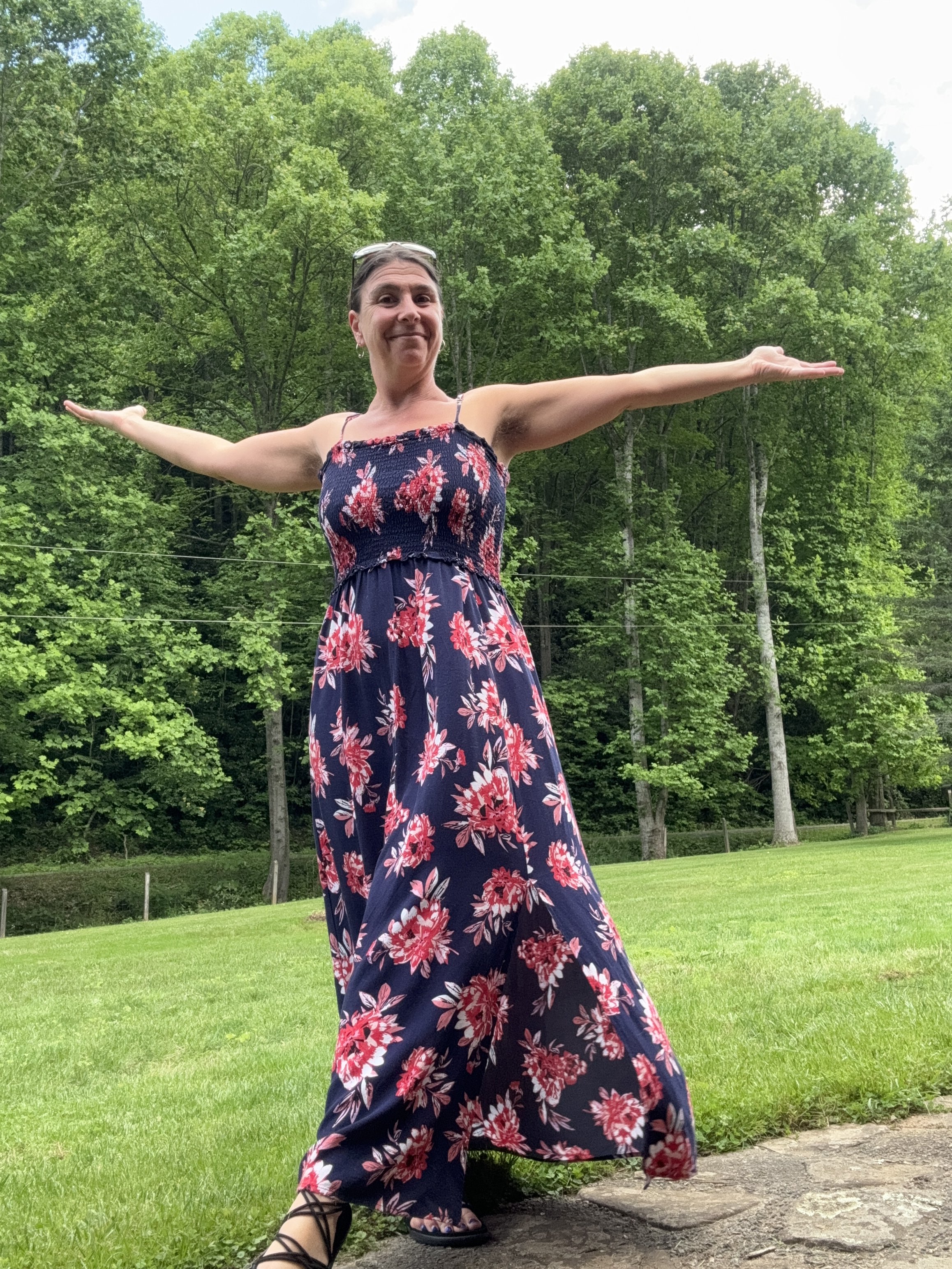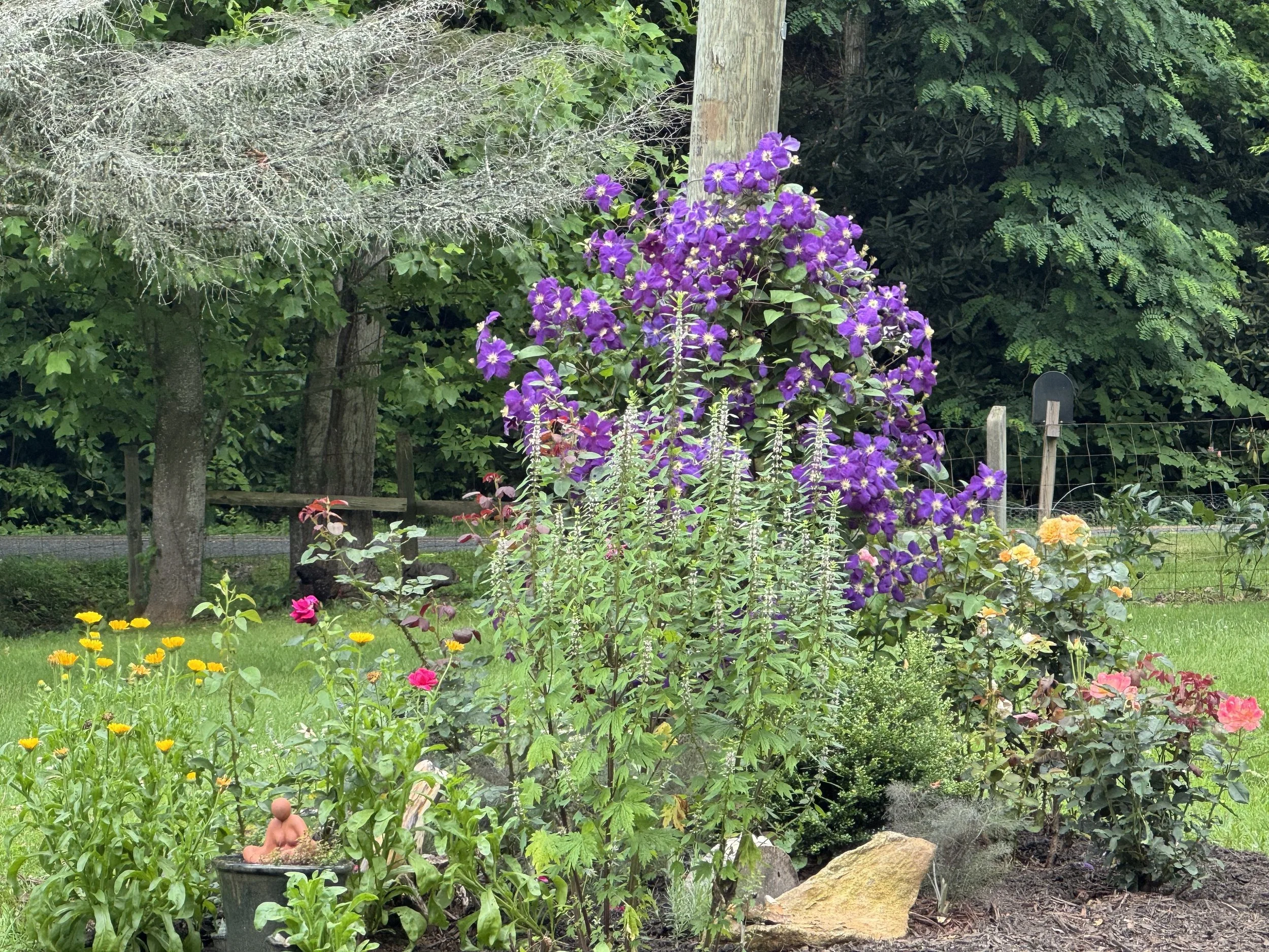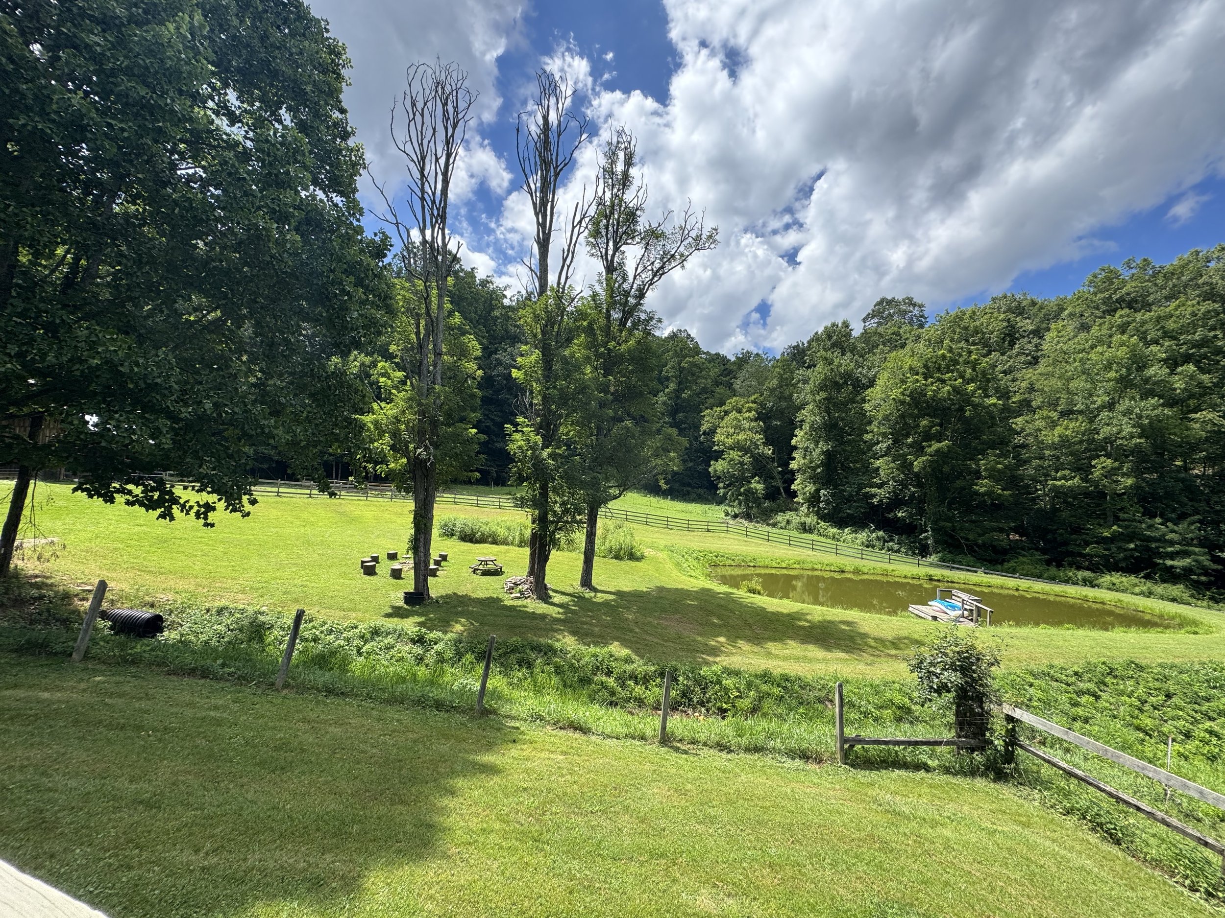 Four acres of western North Carolina land, nestled between the mountains, that has absolutely no expectations of you. Two gurgling creeks. A working permaculture garden that's always mid-becoming. Animals who are genuinely delighted to see you, no matter how put-together you are when you arrive.