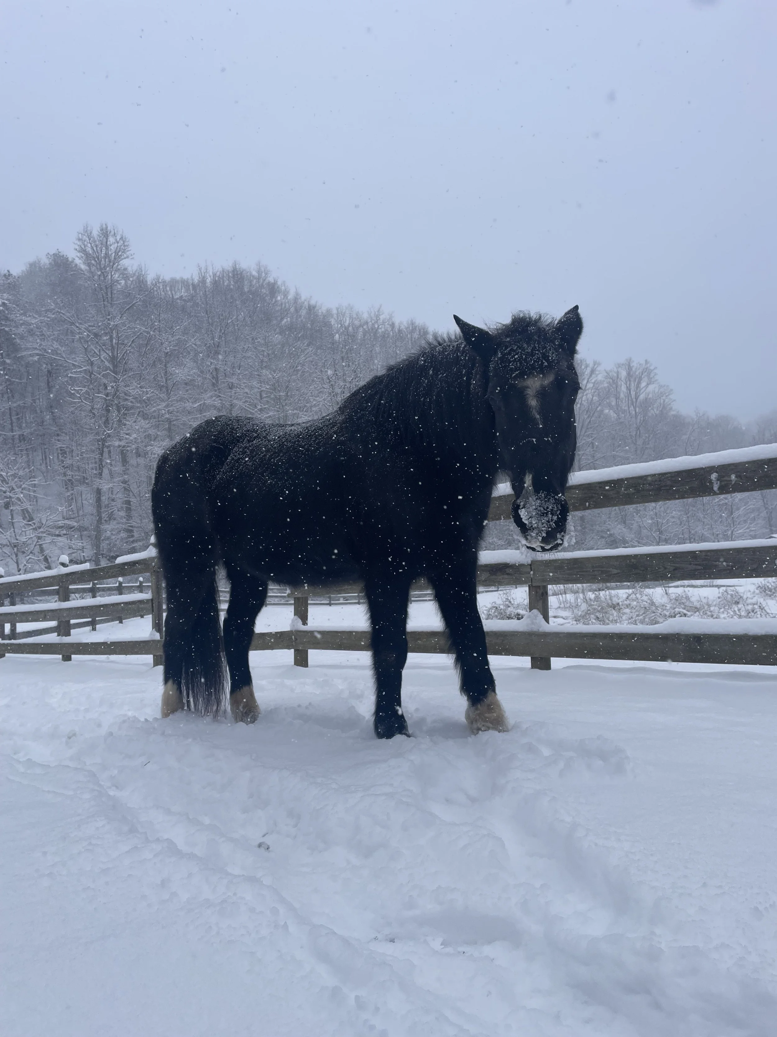 A grounded, wise mare who knows more about stillness than most of us will ever understand. You don't need to do anything with Magic — just be near her. Her presence has a way of slowing time down. You may notice your breathing change before you realize why. There is no agenda with Magic, no technique, no doing. Just two beings sharing the same space until something in you remembers how to rest.